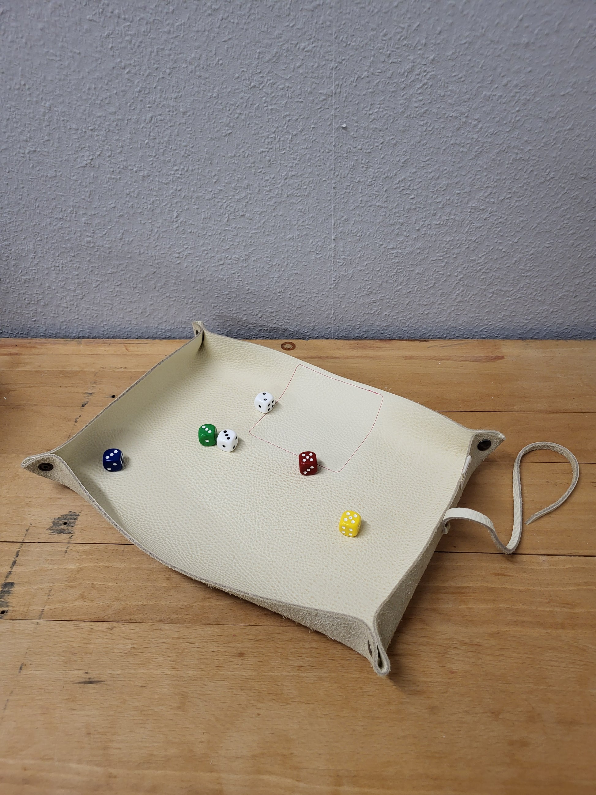 Op een stille camping een spelletje spelen, maar de dobbelstenen maken lawaai op de tafel? Of een spelletje spelen in de trein? Dan is een dobbelmat de oplossing. Je klikt hem tot een bakje en de stenen rollen heel lekker op het leer.