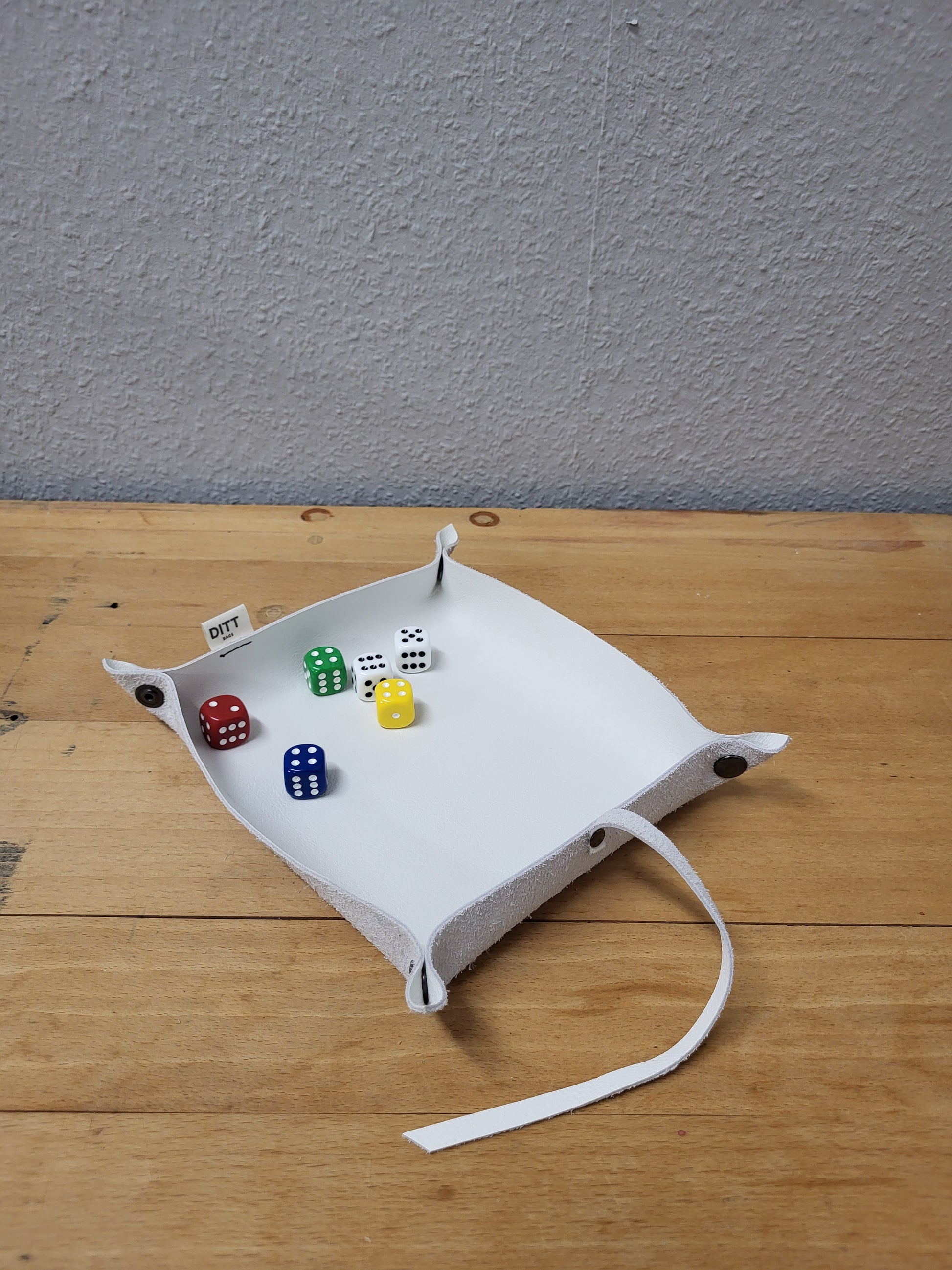 Op een stille camping een spelletje spelen, maar de dobbelstenen maken lawaai op de tafel? Of een spelletje spelen in de trein? Dan is een dobbelmat de oplossing. Je klikt hem tot een bakje en de stenen rollen heel lekker op het leer.