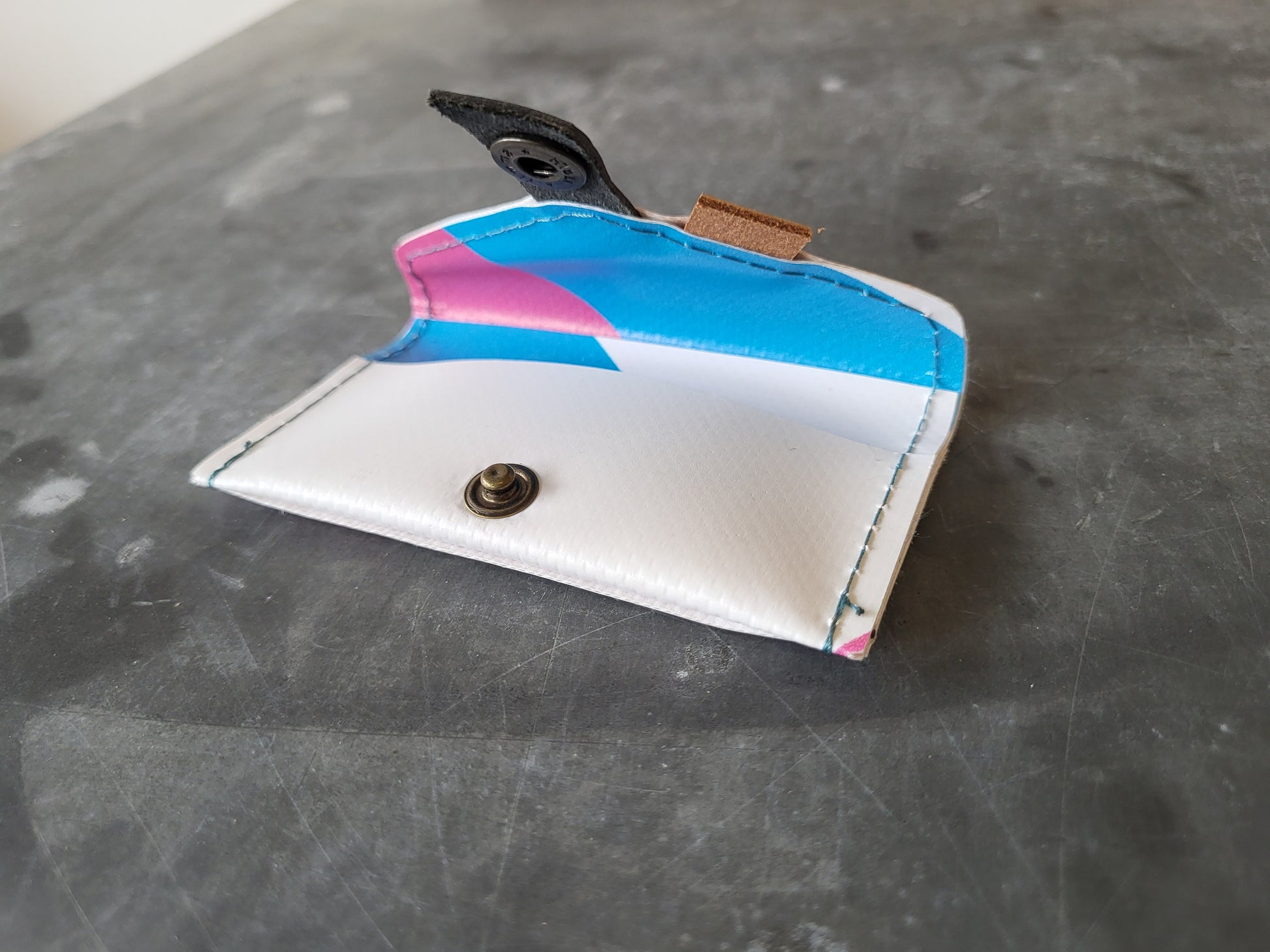 Deze kaarthouder is gerecycled van de banner van dansnacht POP-O-MATIC in TivoliVredenburg.