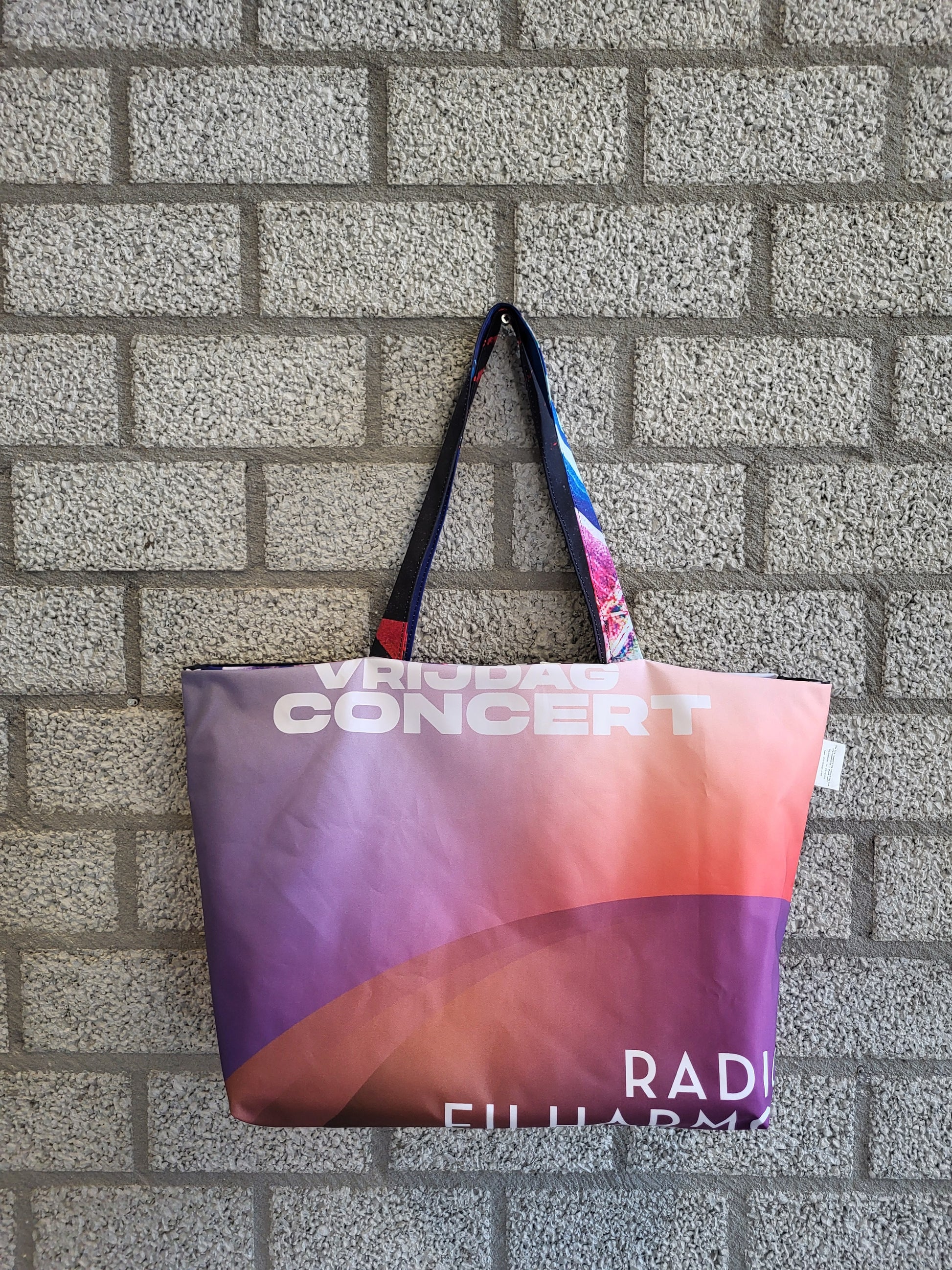 Deze mooie shopper is gemaakt van voormalig promodoek van TivoliVredenburg x LOOSE ENDS, het festival op Beton-T in Utrecht. Het materiaal is lichtgewicht en zeer sterk. De tas is omkeerbaar dus je hebt twee tassen in één!