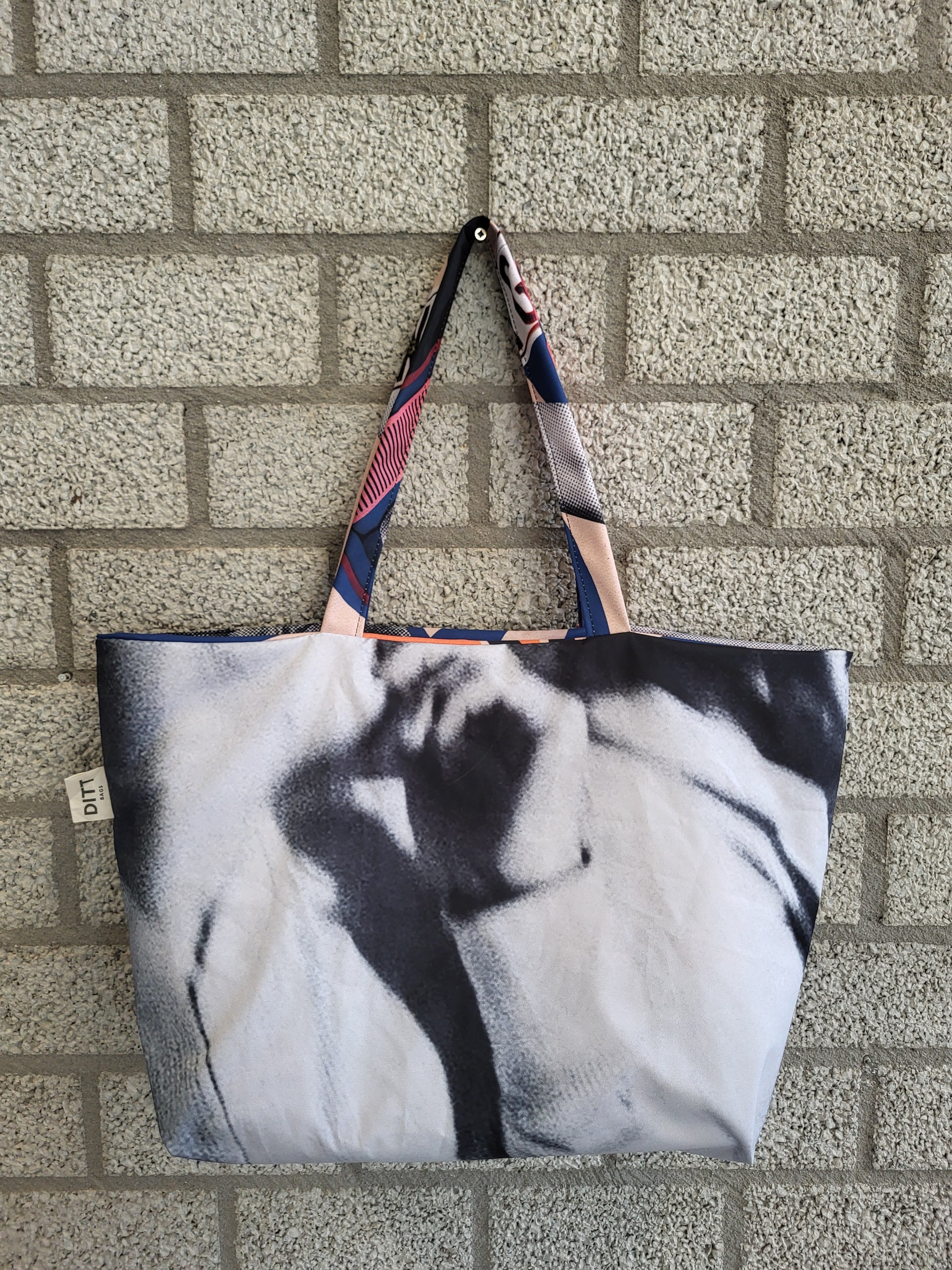 Deze toffe shopper is gemaakt van voormalig promodoek van dansnacht Vinyl Feestje in TivoliVredenburg. Het materiaal is lichtgewicht en zeer sterk. De tas is omkeerbaar dus je hebt twee tassen in één!